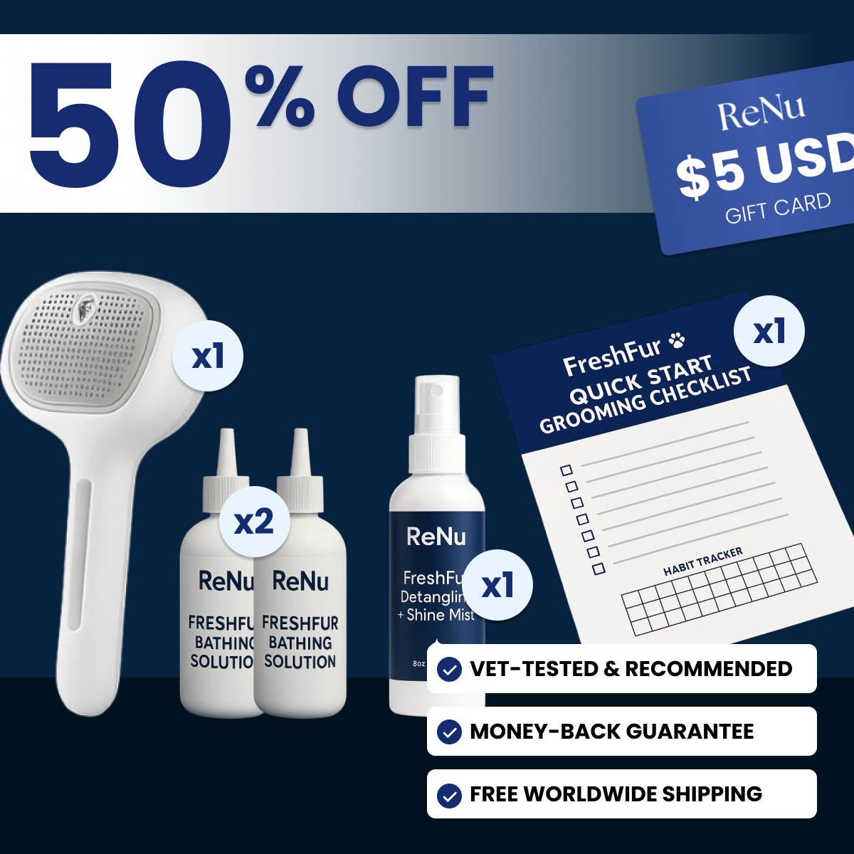 My poor dog was constantly licking his paws raw. We changed foods, tried steroids (which made him grumpy), and nothing helped. After using the FreshFur brush with the bathing solution, the itching stopped immediately. His coat smells clean now—not like corn chips! Honestly, the best $30 I’ve spent after months of failed vet visits.